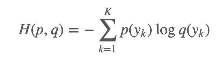 을 알고 있다면 위의 식처럼 entropy를 쉽게 계산할 수 있습니다. 하지만, ML 문제에서 True Distribution은 알 수 없으며, 이 Distribution을 알기 위해 분류기들이 학습을 하는 과정이 ML입니다. ML에서는 True distribution $p(y)$를 알기 위해 $q(y)$ 분포를 이용해 분류기를 학습하게 됩니다.