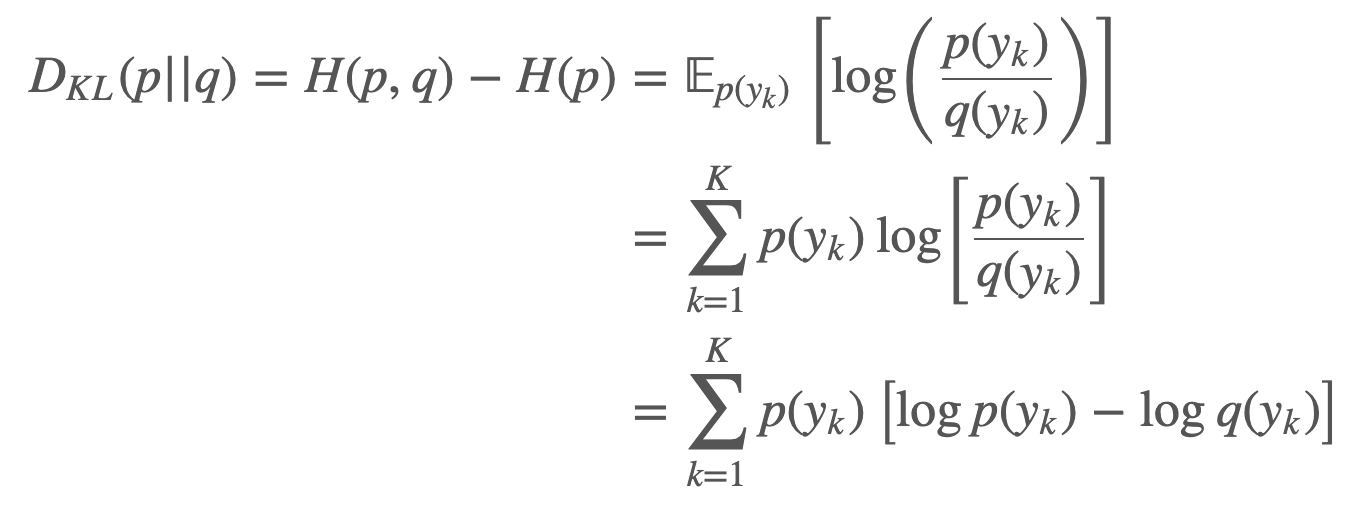 $$D_{KL}(p || q) = P(x)logP(x) - P(x)logQ(x)$$